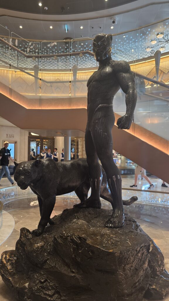 El concepto impregna cada detalle. La proa muestra a Minnie Mouse en versión heroína, mientras que en la popa aparece Spider-Man. Los espacios interiores alternan ambientes inspirados en héroes y otros que celebran a los villanos, creando un contraste visual y narrativo constante. Este enfoque convierte al Disney Destiny en el barco temático más coherente e inmersivo de la historia de la naviera.