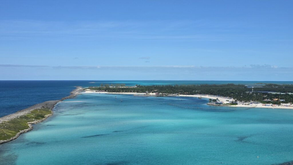 Escala más corta de lo habitual por un ajuste de horarios. Los pasajeros asistieron a paneles exclusivos en el Walt Disney Theatre antes de desembarcar en la isla privada.